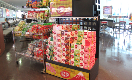 空港限定キットカットや、人気のレモンイカ天の販売をしております。